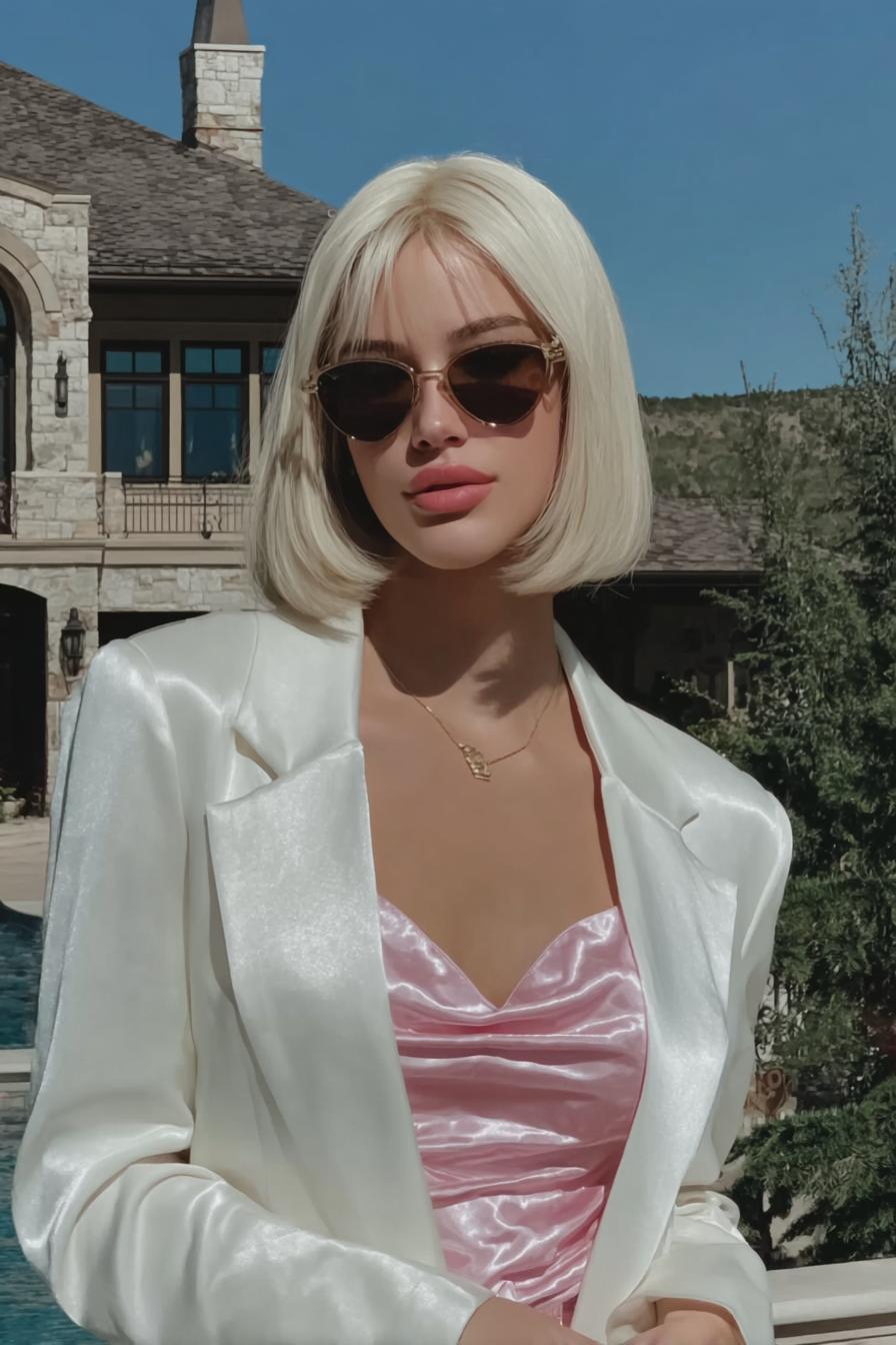 Blonder Bob und Minimal-Chic