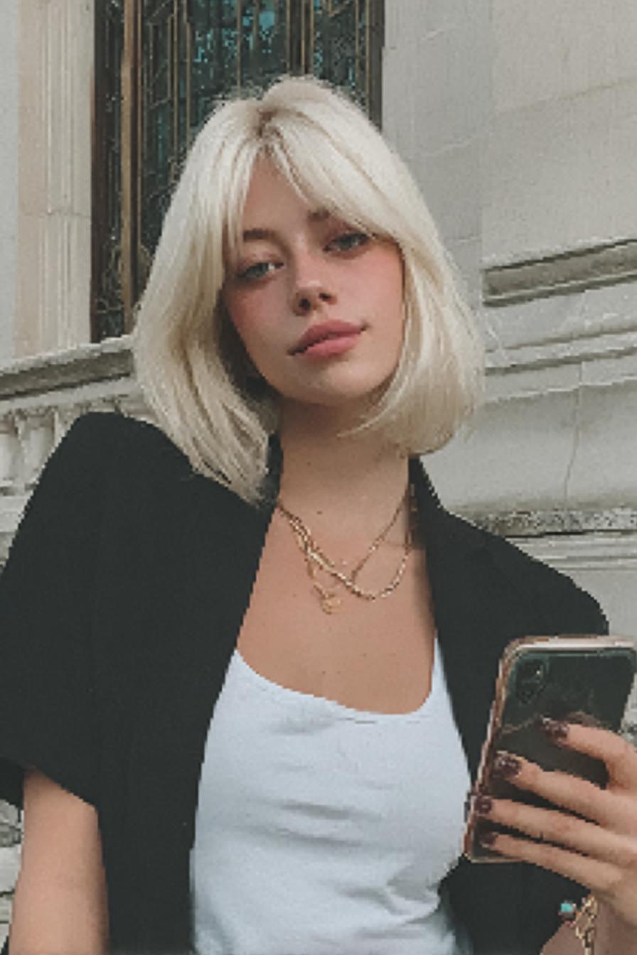 Platinblond mit Pony
