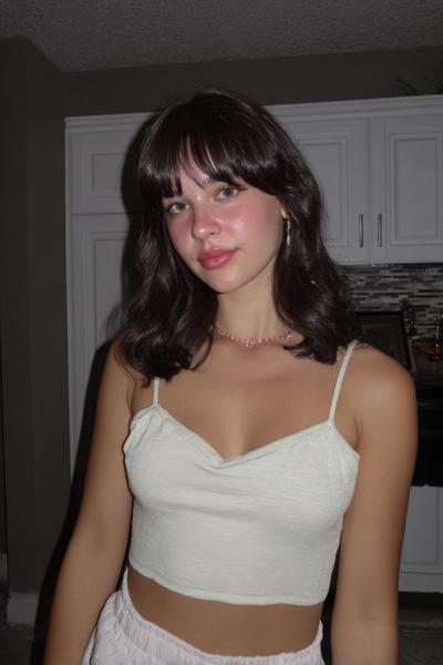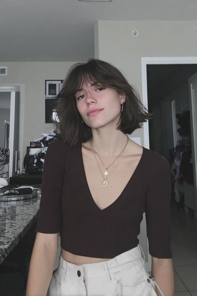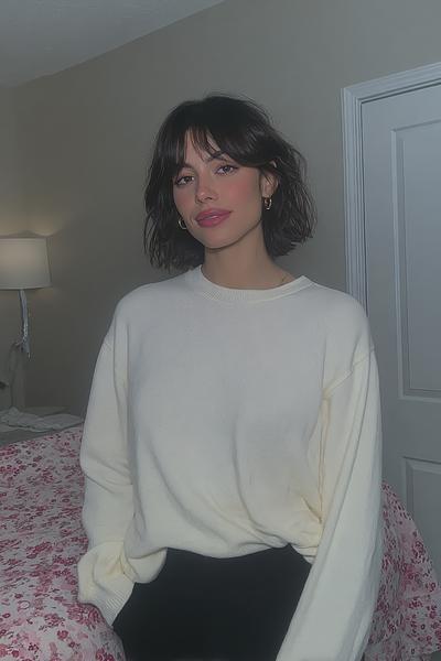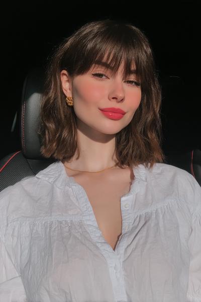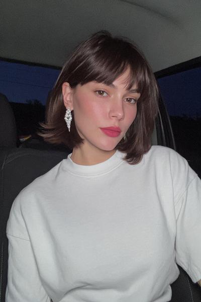 Der kürzere Schnitt gibt mehr Bounce, der Pony schnappt sanft nach außen. Mit weichem Schwung und etwas Texturcreme entsteht ein frischer, jugendlicher Vibe.