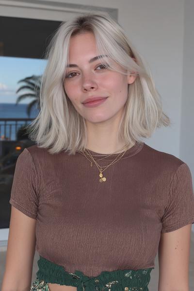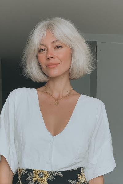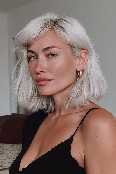 Frecher Platin-Bob mit Retro-Schwung, mittellang