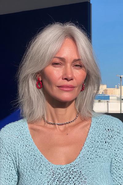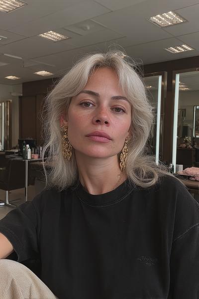 Ich mag den rebellischen Vibe: mittellange Stufen, choppy Pony, viel Luftigkeit. Arbeite mit Texture Paste in den Längen, kneten, nicht kämmen. So wirkt das Grau lebendig statt flach – urban, cool.