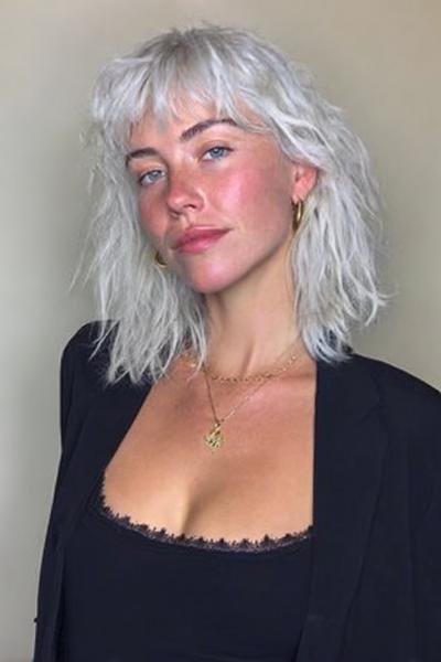 Ein mittellanger Shag mit aschig-grauem Finish und Beach-Textur – so unkompliziert, so cool. Mit Salzspray kneten, Spitzen leicht ausdrehen, Pony locker fallen lassen. Ergebnis: spontane, freche Bewegung ohne Mühe.