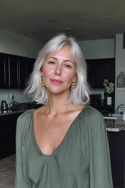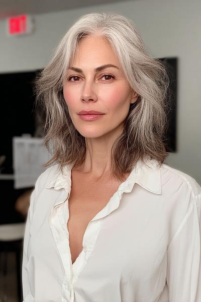 Sassy Silver: Mittellange Frechfrisur mit natürlichem Schimmer