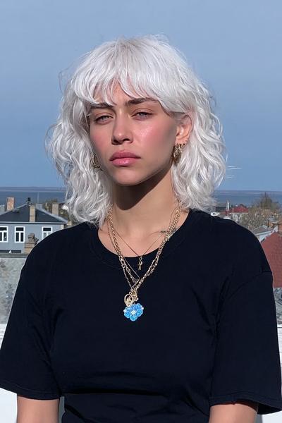 Ein mittellanger, zotteliger Schnitt in Lavendelgrau – verspielt, aber sophisticated. Mit Texturspray und Fingern zerknautscht entsteht bewegter Schwung. Der Ton schmeichelt kühlem Teint und verleiht sofortigen Trend-Charakter.