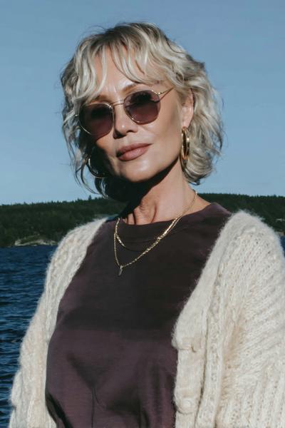 Lockiger Bixie in Eisblond mit runder Sonnenbrille – ab 50