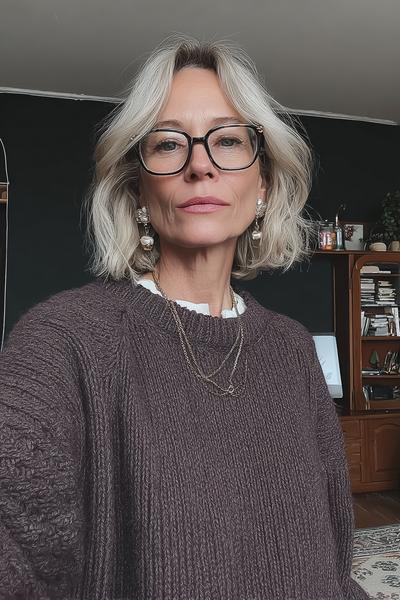Wavy Shag-Bob mit Pony: Frisuren ab 50 mit Brille
