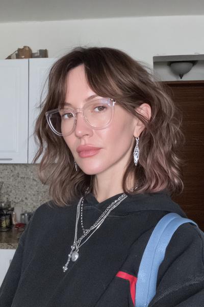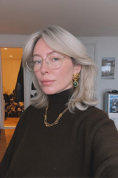 Die federigen Stufen bringen Bewegung in mittlere Längen; die zarte Tönung der Gläser wirkt gemütlich und chic. Ich arbeite gern mit Volumenpuder am Ansatz und etwas Creme in die Spitzen – so bleibt alles weich.