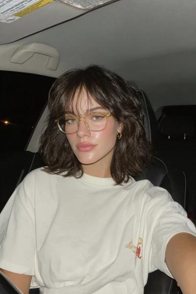 Moderner Shag mit luftigem Pony und feiner Brillenfassung – ab 50