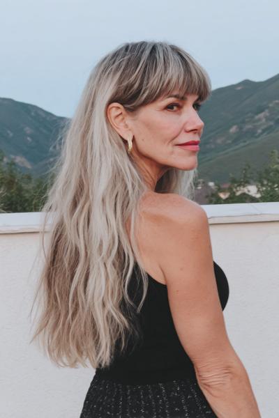 Die Curtain Bangs rahmen weich, die Länge bleibt locker. Mein Trick: Meersalzspray für lässige Textur und Leichtigkeit immer.
