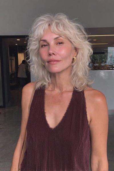 Frisuren ab 60 halblang: Moderner Shag mit Curtain Bangs