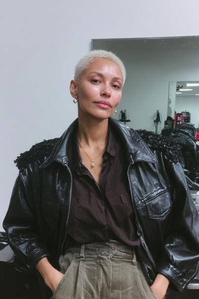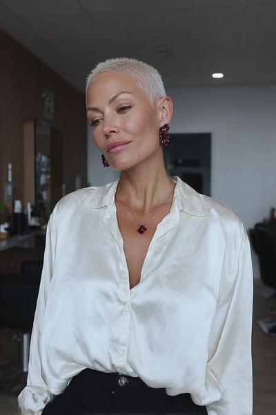 Seitlich geworfen, mit gehackten Stufen und mattem Finish – dieser Schnitt schreit nach Persönlichkeit. Ein Klecks Paste, Scrunch, fertig. Ich liebe die Linie am Kiefer: kraftvoll, sinnlich, super aktuell.