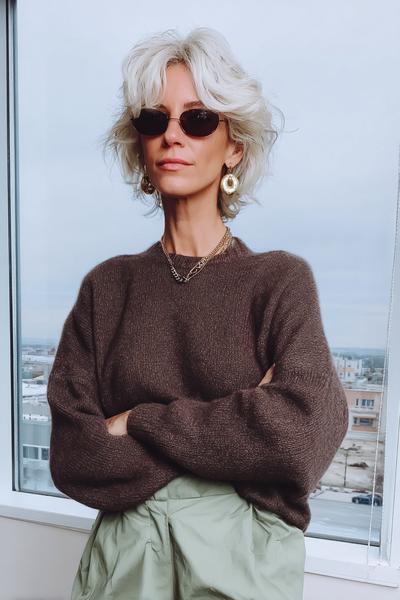 Ein kurzer Shag bis Schlüsselbein, federleichte Stufen und luftiger Pony – ich liebe die Bewegung! Mit Salzspray entsteht dieser sexy Undone-Effekt. Für reifes, feines Haar genial: mehr Volumen, weniger Aufwand, maximal moderne Eleganz. Auch der silbrige Ton wirkt super frisch und strahlend.