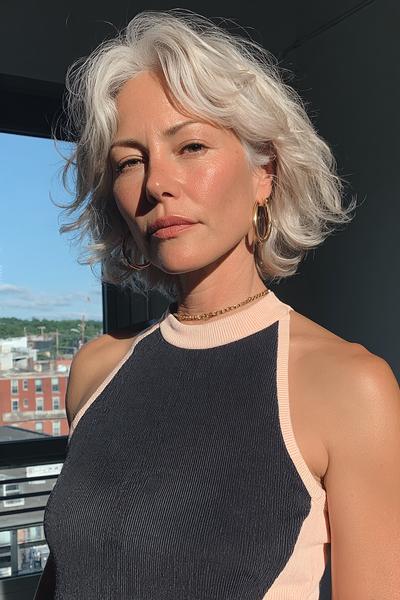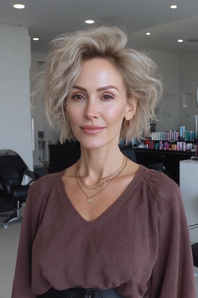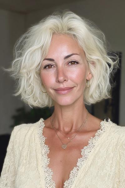 Silberblonder Shaggy-Kurz-Bob mit sanften Wellen