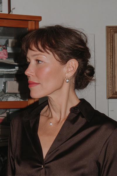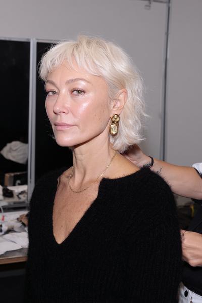 Ein sanft gestufter Kurz-Bob, der die Naturwelle umarmt. Leichter Volumenschaum am Ansatz, dann Lufttrocknen für schmeichelnde Bewegung. Ein Glossing macht ihn strahlend, der Look bleibt pflegeleicht und wirkt trotzdem sehr chic.