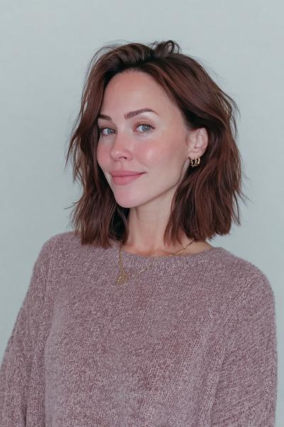 Ein wilder, hellbrauner Shag mit fransigem Pony – genau mein Vibe. Viel Texture-Spray, wenig Perfektion. Die Enden bewusst ungleich lassen, so entsteht rockige Leichtigkeit. Perfekt für alle, die morgens fünf Minuten sparen wollen.