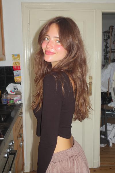 Lange, gestufte Längen mit hellbraunem Schimmer – so weich wie Kaschmir. Face-Framing-Strähnen strecken elegant. Ein paar Tropfen Öl, Salzspray in die Enden, lufttrocknen lassen: beachy und absolut City-tauglich.